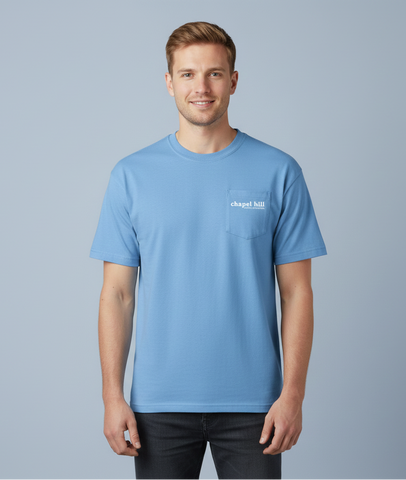 Upgrade your wardrobe with the Comfort Colors Chapel Hill Pocket T-Shirt. Crafted from premium 100% ringspun cotton, this tee offers unparalleled softness and durability. The classic fit provides a relaxed and comfortable feel, while the double-needle stitching ensures long-lasting quality. With its taped neck and shoulder design, you'll experience enhanced comfort and a better fit. Complete with a convenient pocket, this tee combines style and functionality. Whether you're heading to class, hanging out with friends, or cheering on your favorite team, the Comfort Colors Chapel Hill Pocket T-shirt is the perfect addition to your collection.