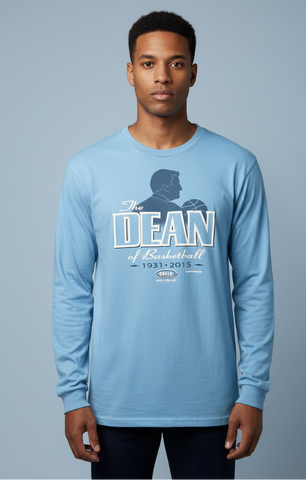 Pay tribute to the legendary former UNC basketball coach Dean Smith with The Dean of Basketball Long-Sleeve T-shirt. Crafted from lightweight cotton fabric, this shirt offers a comfortable and relaxed fit, making it ideal for everyday wear. The shirt features a bold graphic print that honors Dean Smith and his lasting impact on the game of basketball. Whether you're a die-hard Tar Heels fan or simply appreciate the legacy of one of the greatest coaches in basketball history, this long-sleeve shirt is a must-have addition to your wardrobe. Show your admiration for the Dean and keep his memory alive with this timeless piece.
