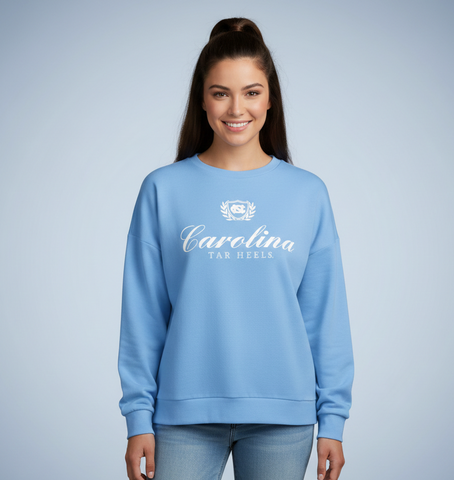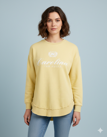The North Carolina "Augusta" Long-Sleeve Fleece Top is the ultimate blend of warmth and style for UNC Tar Heels fans. Crafted from soft fleece fabric, this top is designed to keep you cozy during cooler days while showing off your school spirit. The classic long-sleeve cut and relaxed fit bring an element of casual elegance, making it versatile for game days, lounging, or any casual outing. Embrace the comfort and pride of UNC with this essential piece in your Tar Heel wardrobe.