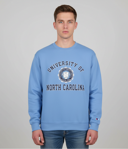 Keep your young Tar Heel fan cozy and stylish with the University of North Carolina Seal Crewneck! Crafted from soft, durable fleece fabric, this hoodie offers all-day warmth and comfort. The ribbed waistband and cuffs ensure a snug fit, while the iconic Champion details add a touch of athletic flair. Whether it's game day or just a casual outing, this crewneck is the perfect choice for showcasing Carolina pride in classic style. A must-have for any young UNC fan!
