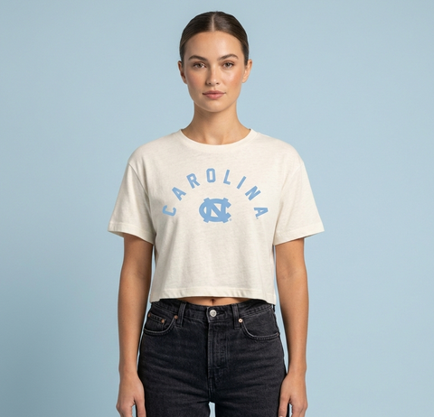 Show off your Carolina pride in style with the Women's Carolina Cropped Shirt! This trendy cropped top features an embroidered arch Carolina logo and a vibrant Carolina blue UNC logo, making it the perfect choice for any dedicated Tar Heels fan. Crafted from lightweight, comfortable fabric, it ensures you look and feel amazing all day long. The adjustable drawstring waist allows for a flattering fit that accentuates your style. Stand out from the crowd and represent your favorite team with this must-have addition to your wardrobe! Available in Ivory, Light Gray, and Dark Gray, Sizes S-XL. Get yours today!