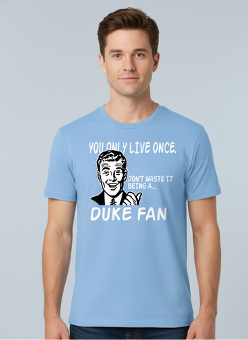 Live life to the fullest and show your UNC pride with the YOLO - You Only Live Once T-Shirt. Designed for comfort and style, this tee features a bold message that encourages seizing every moment while proudly celebrating your Tar Heel spirit. With a playful jab at Duke fans, it’s the perfect way to express both your passion for Carolina and your zest for life. Don’t wait—grab your "YOLO - You Only Live Once" T-shirt today and wear your UNC pride with confidence!